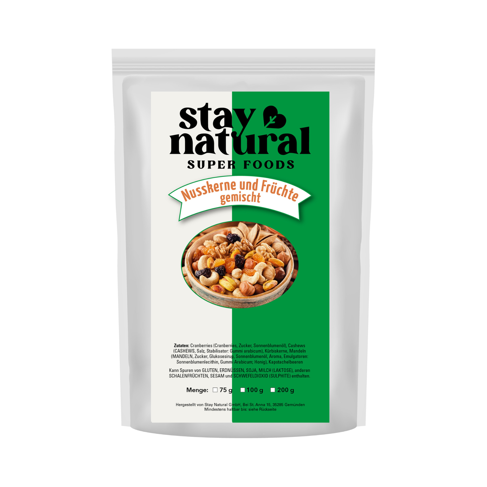 💪 Energie & Balance Nüsse liefern wertvolle Fette und Proteine, Früchte sorgen für Frische – ideal als Snack, Müsli-Topping oder Begleiter im Alltag.