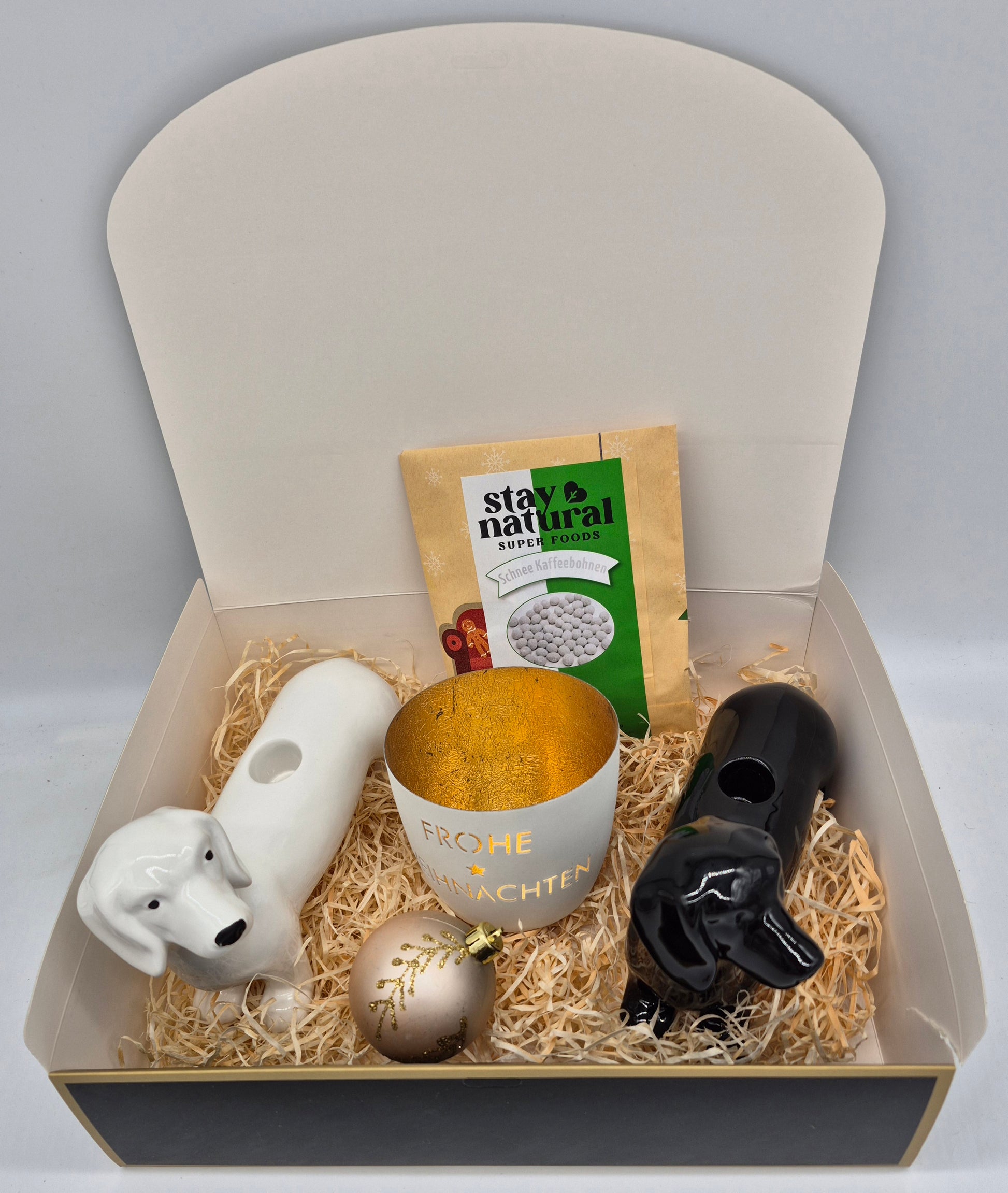 🎁 Exklusives Geschenkset – Dekoration & Lakritzgenuss Dieses besondere Set vereint 3 dekorative Highlights mit einer liebevoll verpackten Portion Lakritz à 35 g. Die Kombination aus stilvollen Dekoartikeln und feinem Lakritz macht das Set zu einem einzigartigen Geschenk für Genießer und Dekoliebhaber.