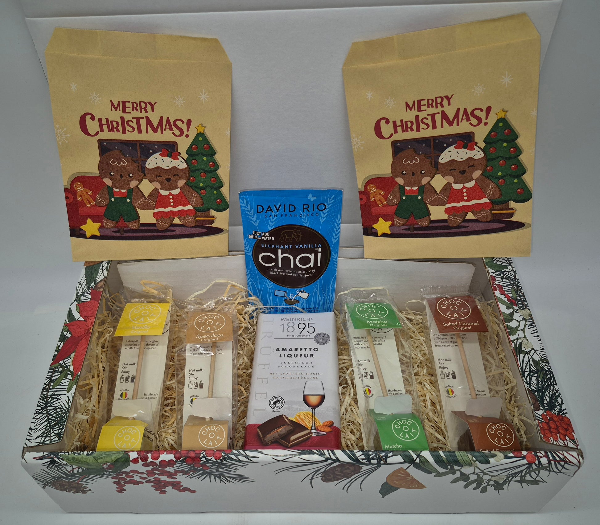 Geschenkset – Trinkschokoladen- 4er Set mit ausgewählter Amaretto Schokolade