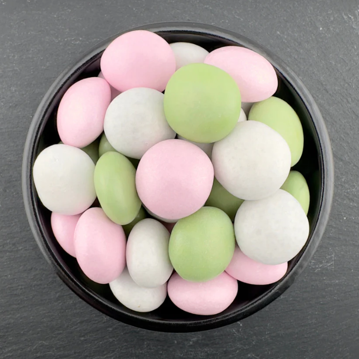 🍬 Frisch & zart – Minzdragees mit Schokoladenkern Zarte Schokolade trifft auf frische Minze – umhüllt von pastellfarbenem Glanz. Für alle, die es elegant und aromatisch lieben.